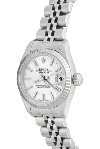 Stainless Steel case with 18k White Gold bezel (25 mm dia.)