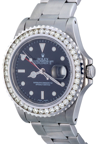 Stainless Steel case with custom 3 ct. channel set Diamond bezel (41mm dia.)