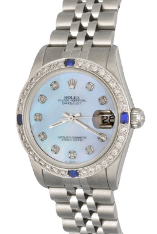 Custom blue Mother Pearl Dial with Diamond hour markers